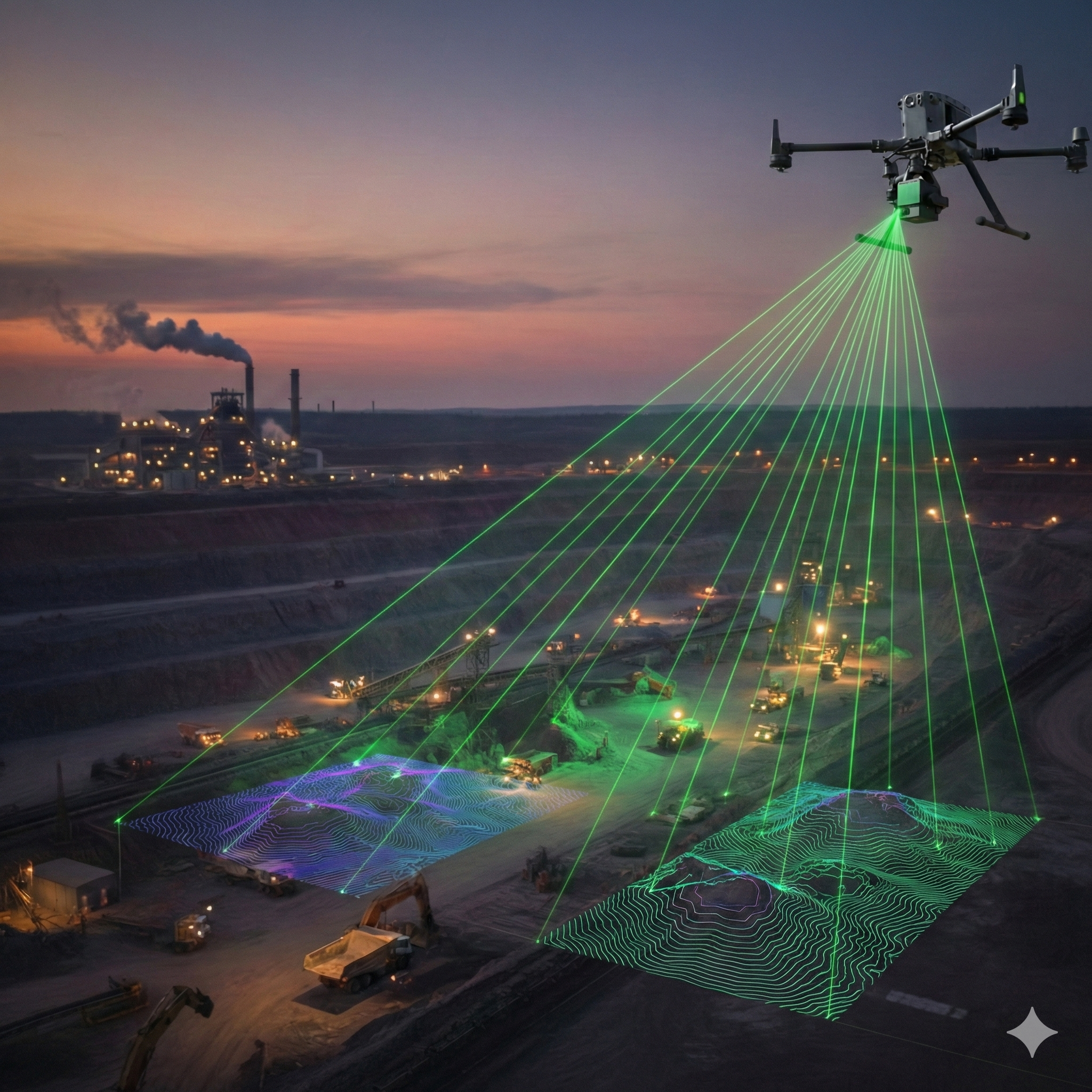 In mining, LiDAR-equipped drones are employed to inspect mines after planned detonations, ensuring the safety of the area before sending in human workers. These drones also measure ore volumes and extraction spaces.